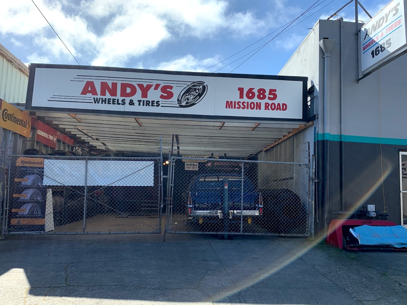 A: Andy's Wheels & Tires is conveniently located at 1685 Mission Rd, South San Francisco, CA 94080.